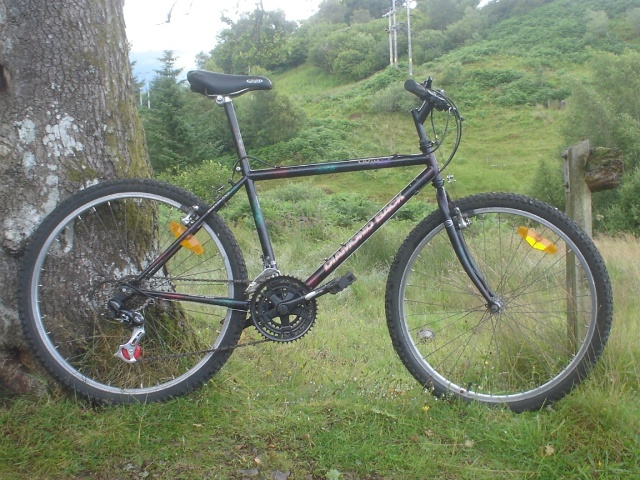 Diamondback Outlook mountain bike. Used in good condition Straightforward good quality mountain bike. Ready to head for the countryside or as a dependable commuter. Serviced in full working order. 16" steel frame tange forks 26" wheels suit inside leg 30 - 32" Shimano SIS 18 speed with thumb shifters Cantilever brakes front and rear 26" alloy wheels with 1.95" tyres with  good tread. Bike is fully serviced and shipped fully assembled. Pedals will be reversed and handlebars turned to side. Price including shipping £95 |