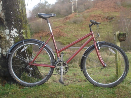 Edinburgh Cycles Contour 200 mountain bike, used, in good condition. Not very glamorous in it's brown livery but this bike will give long dependable service cutting through the traffic or bounding along country tracks. Full mudguards to keep you clean. Fully serviced to ensure perfect working order. 20" steel frame in brown 26" wheels suit inside leg 25" - 33" Shimano 21 speed with gripshifters V-brakes front and rear. Gel comfort saddle. 26" alloy rims 1.95" tyres with Vuelta Megadrive tyres Extras: Full mudguards Bike is fully serviced and shipped fully assembled. Pedals will be reversed and handlebars turned to side. Sold £67 |