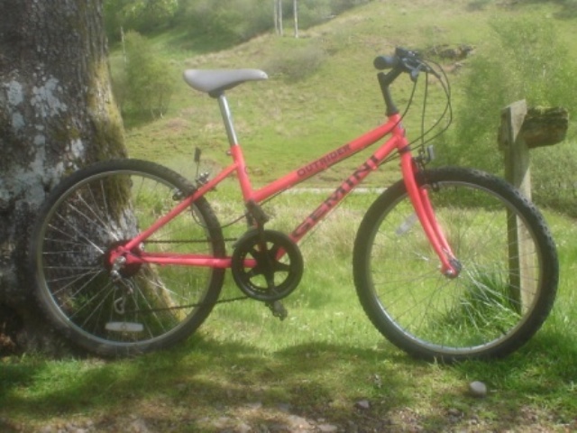Straightforward, children's mountain bike. Serviced in full working order. 14" steel frame in pink 24" wheels suit inside leg 23-27" Shimano SIS 10 speed gears with thumbshifters Caliper brakes front and rear 24" wheels 1.95" tyres with light offroad tread in good condition. Sold £27.50 |