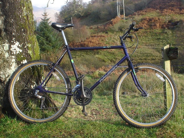 Raleigh 15 speed mountain bike, used, in good condition. No nonsense Raleigh. Good solid workhorse for town or country. If it gets a reasonable price I'll throw in a set of mudguards to keep your Armani's clean. Serviced to ensure perfect working order. 20.5" steel frame in purple 26" wheels suit inside leg 32" - 34" Shimano SIS 15 speed with thumb shifters. Cantilever brakes front and rear. Velo saddle 26" alloy rims 1.75" tyres with road tread. Bike is fully serviced and shipped fully assembled. Pedals will be reversed and handlebars turned to side. Sold £70 |