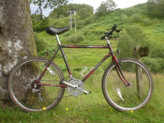 Raleigh Mustang mountain bike. Used in good condition This one has hardly been used. Stored inside and ready for a new lease of life. Make a fine bike for student or commuter. Serviced in full working order. 20" steel frame in smoky red 26" wheels suit inside leg 32 - 33" Shimano SIS 15 speed with thumb shifters Cantilever brakes front and rear Comfy saddle Bottle cage 26" wheels with 1.95" tyres with light offroad tread. Bike is fully serviced and shipped fully assembled. Pedals will be reversed and handlebars turned to side. |